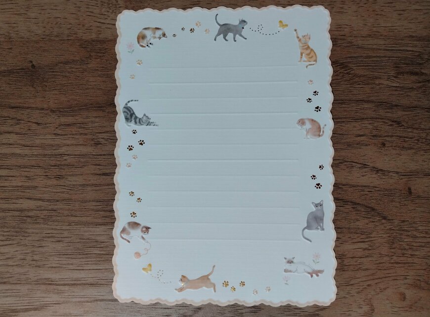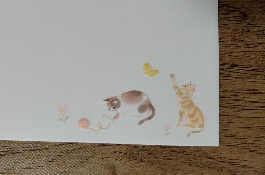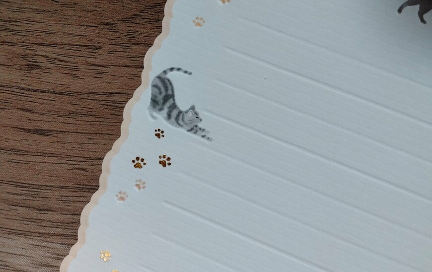 こちらは猫と罫線がエンボス加工でふっくらと浮き上がっています。高級感ある便箋です。