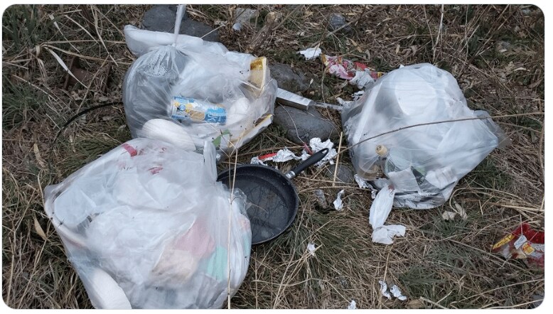 「【片付け方がわからない?本気で言ってますか?】」のキャプションとともに、置き去りにされたゴミの写真が投稿されています。