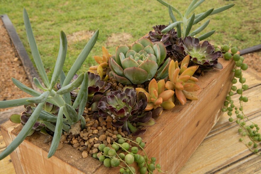 花を育てるのに自信がない人は、多肉植物の寄せ植えがオススメ。華やかさは花には劣るものの、愛らしい見た目と手間がかからないのが大きな魅力です。