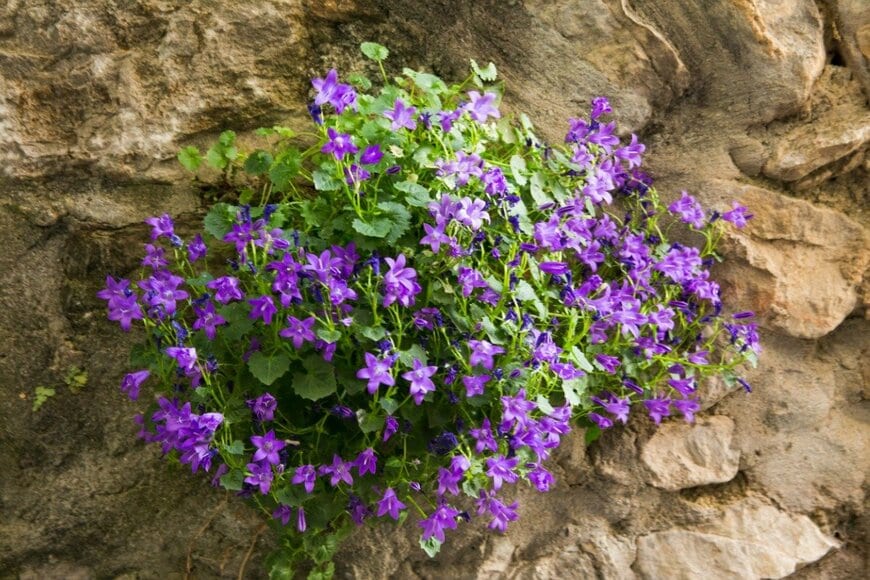パープルの小花を株いっぱいに咲かせるベルフラワー。オトメギキョウとも呼ばれ、春に花を咲かせる多年草です。