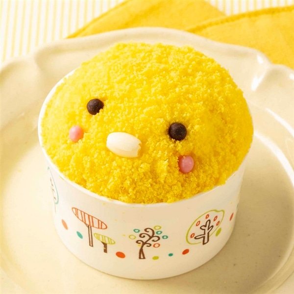 レモン風味のスポンジクラムを表面にふりかけ、シリアル入りチョコで顔を飾り付け。ことりをイメージした見た目もかわいいスイーツです。サクサクとした食感の甘いシリアル入りチョコと、なめらかなカスタード入りホイップクリームの組み合わせが楽しめます。お子さんたちも安心して食べられるやさしい味の一品です。