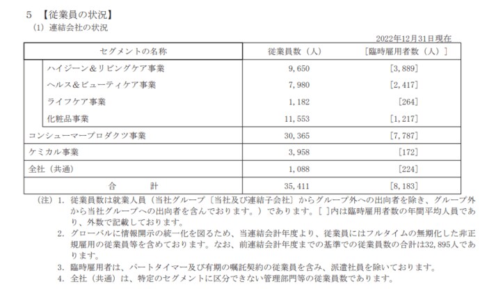 2. 花王の従業員数は何人か