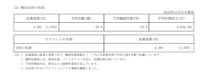 資生堂の給料はいくらか。平均年齢・勤続年数も【2022年更新版】 就職と転職の企業調査・分析シリーズ 2023.03.27 03:50 公開 執筆者LIMO編集部 copy URL 目次[開く] 1. 資生堂の平均年間給与はいくらか 2. 資生堂の従業員数は何人か 3. まとめにかえて 参考資料 1. 資生堂の平均年間給与はいくらか 資生堂(提出会社)の2022年12月末時点での従業員数、平均年齢、平均勤続年数および平均年間給与は以下の通りです。 出所:資生堂「有価証券報告書」 すべての画像を見る(2枚) 従業員数:4283人 平均年齢:38.9歳 平均勤続年数:10.9年 平均年間給与:663万4381円 ※平均年間給与には、賞与及び基準外賃金が含まれます。 2. 資生堂の従業員数は何人か < 1 2 3 4 > 関連タグ #就職 #給与 #年収 注目コンテンツ 上皮内がんも対象になるがん保険。1番人気のがん保険は?[PR] 働けなくなった時の備えはできている?人気の就業不能保険をチェック[PR] 【LIMOで懸賞】新しいプレゼントが続々登場中!最新情報はこちらから[PR]