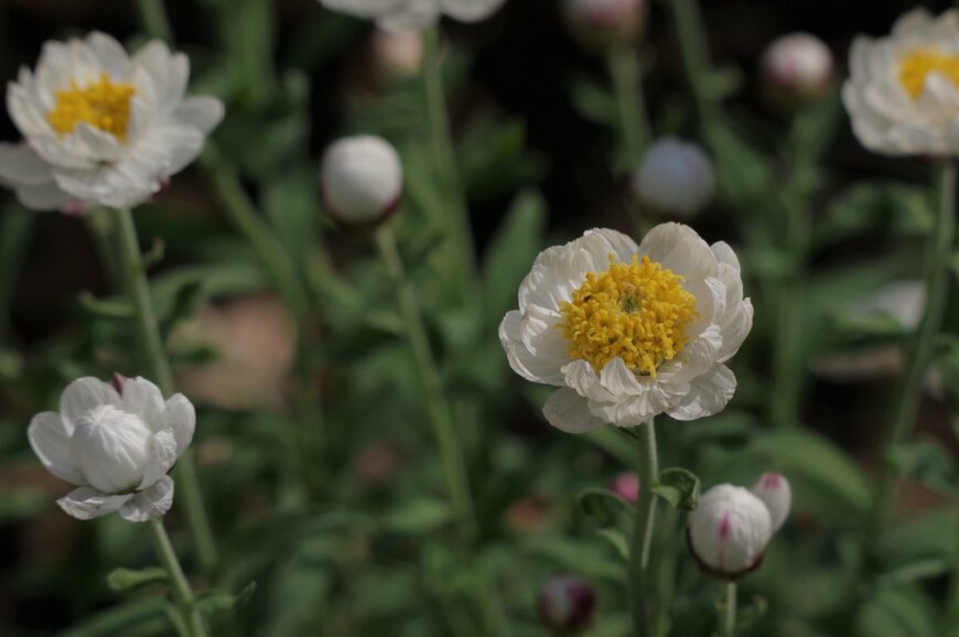 花びらに見える萼片と糸状の総苞片が複雑に組み合わさり、個性的なフォルムで魅せるニゲラ。花後に黒い種を付けることから「クロタネソウ(黒種草)」という名前でも呼ばれています。