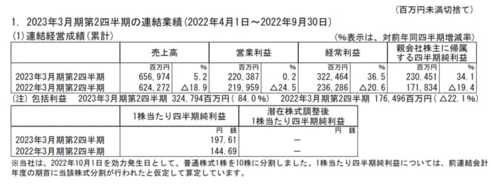 任天堂の業績は2023年3月期第2四半期は増収増益でした。