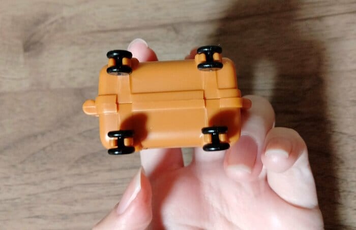 バッグ下側の車輪はきちんと回る仕様となっています。本物と同じようにコロコロと転がして遊ぶことができます。