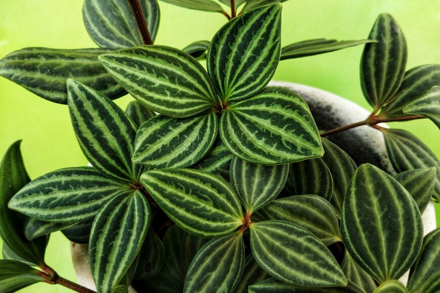 品種が多く、葉形や樹形のバリエーションが豊富なペペロミア。緑・赤・斑入りなどさまざまな色合いの葉を並べる楽しみ方も。カーテン越しに柔らかい光が当たる場所で育てましょう。