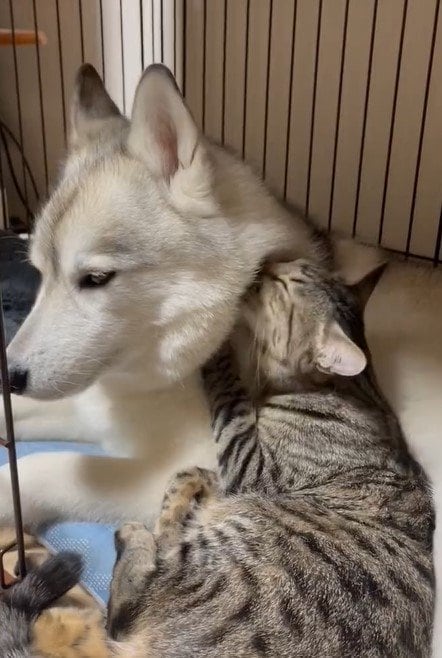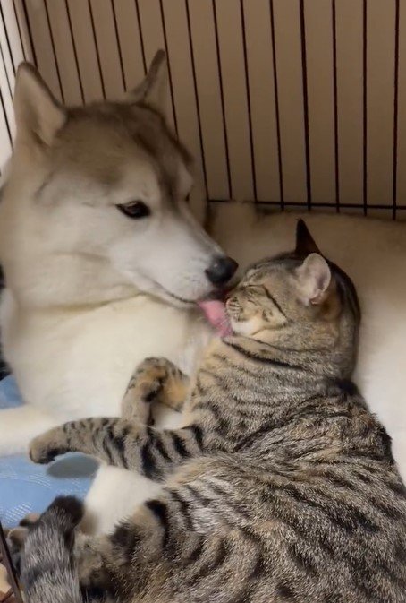 そんな2匹のやりとりは、Twitter上で大勢の心を温めたようです。リプライ欄には「ユキちゃんがサンくんの愛に応えたんだね……!」「親子愛ですね」など心癒された人からの声が多数寄せられています。