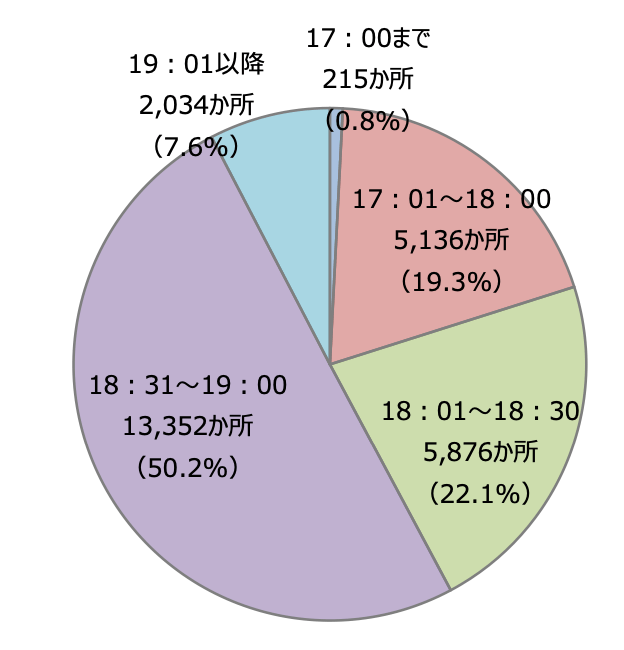 実際に、厚生労働省が管轄している自治体の放課後児童クラブの約40%は18時30分までに閉所していることが分かります。