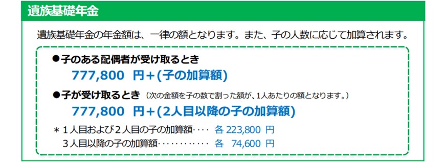 遺族基礎年金の年金額は一律で、子の人数に応じて加算されます。