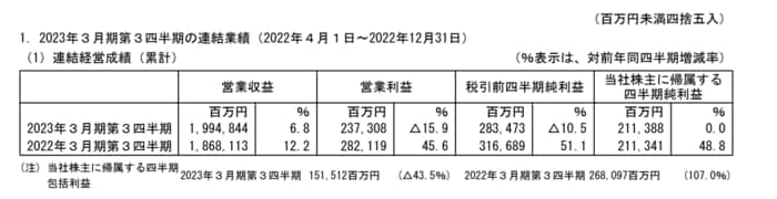 オリックスの株価は2023年初から2月末ごろまでは順調に上昇傾向にありました。その時点ではオリックスの業績に対する大きな懸念はなく、むしろ第2四半期の決算と比較すると改善しているようにも見えるでしょう。