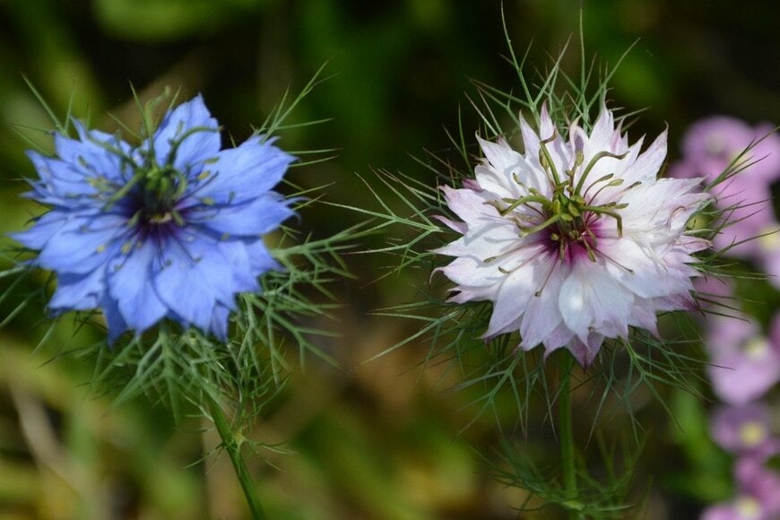 独特の花を咲かせる一年草のニゲラは花後の種ができた姿もドライフラワーとして楽しむことができます。ホワイトやブルーの品種は涼しげな印象で、これからの季節の庭にぴったりです。