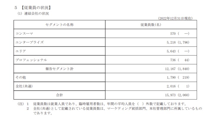 キヤノンマーケティングジャパンの給料はいくらか。平均年齢・勤続年数も【2022年更新版】 就職と転職の企業調査・分析シリーズ 2023.04.07 03:50 公開 執筆者LIMO編集部 copy URL 目次[開く] 1. キヤノンマーケティングジャパンの平均年間給与はいくらか 2. キヤノンマーケティングジャパンの従業員数は何人か 3. まとめにかえて 参考資料 2. キヤノンマーケティングジャパンの従業員数は何人か また、連結会社における従業員数は以下の通りです。 出所:キヤノンマーケティングジャパン「有価証券報告書」 コンスーマ:570人 エンタープライズ: 5218人 エリア:5643人 プロフェッショナル:736人 報告セグメント計:1万2167人 その他:1790人 全社(共通): 2016人 合計:1万5973人 3. まとめにかえて < 1 2 3 4 > 関連タグ #就職 #面接 #給与 #年収 注目コンテンツ 女性特有のがんは40代から増える?女性向け医療保険で備える[PR] 【LIMOで懸賞】新しいプレゼントが続々登場中!最新情報はこちらから[PR] 三大疾病に備える!人気の三大疾病保険を比較[PR]