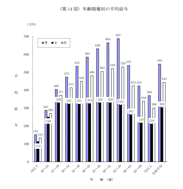 年収300万円というと平均を下回っているものの、実は女性はどの年代も平均が300万円台となっています。
