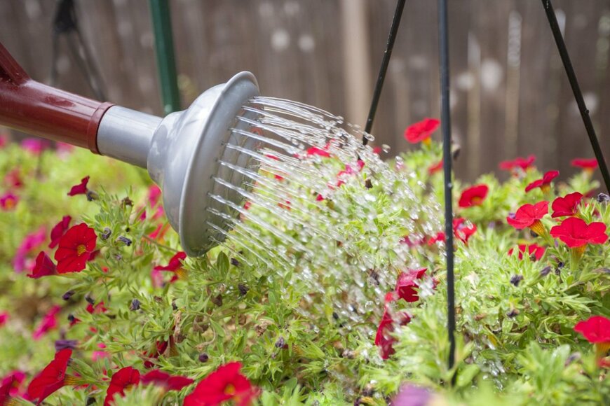 吊るして飾ると風の影響を受けやすく、土壌が乾燥しがち。特に気温が上がる春や夏は土の乾きが早くなるため、小まめに土壌の状態をチェックしましょう。保湿性が高いハンギング用培養土を使用するのもオススメです。