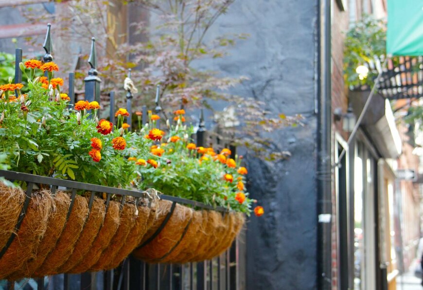 空中花壇は、庭や花壇がなくてもガーデニングが楽しめるのが最大の魅力。一鉢あるだけで玄関前が華やかになり、来客に良い印象を与えることができます。