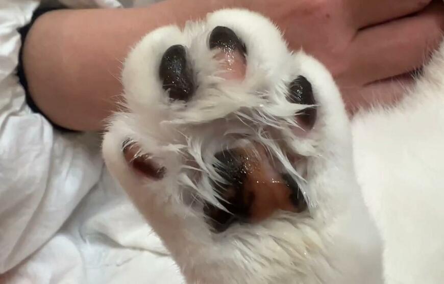 動画の終盤には、猫ちゃんのかわいい肉球のアップが写っていました。