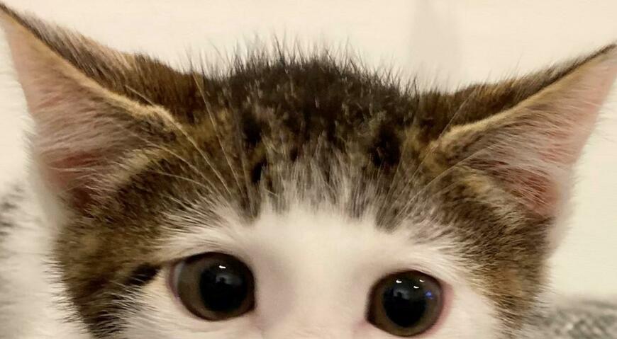 さらに投稿には「#目から上はキジ猫」というハッシュタグも添えられています。アップにして見てみると、目の上周辺までの被毛は「白色」で、頭部からおでこにかけての被毛はラウンド状に「キジ柄」となっていますね。