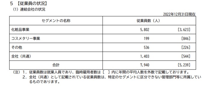 - 化粧品事業:5802人