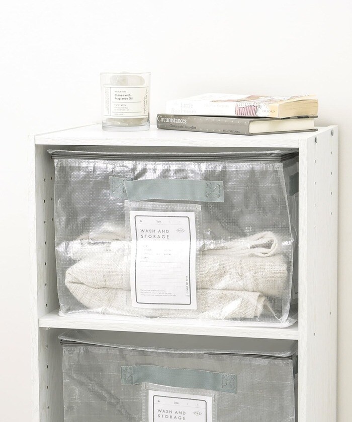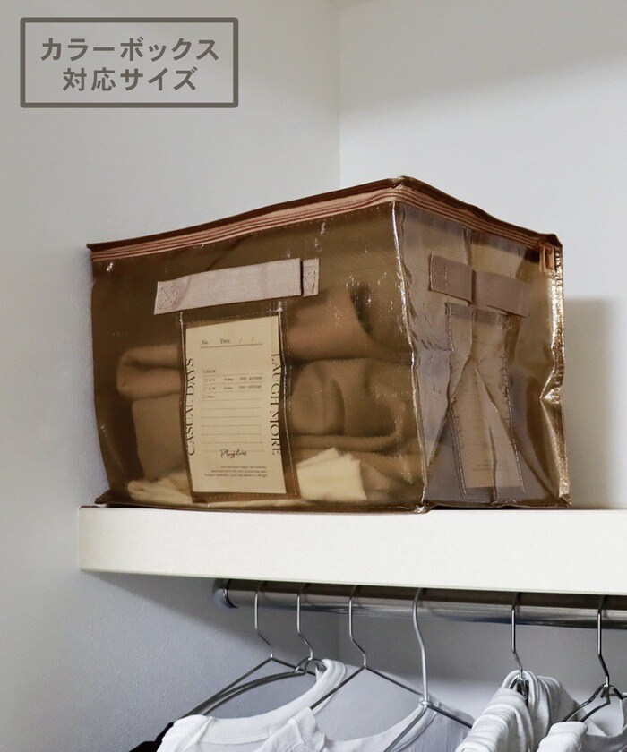 カラーボックスにぴったりなフタ付きクリアボックスです。フラットサイズは一段に二個重ねて収納できます。半透明生地なので、中に何が入っているのか一目でわかり便利です。