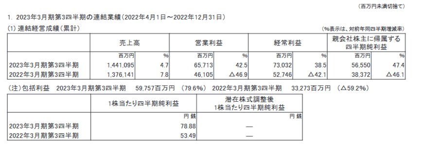出所:株式会社大林組「22023年3月期 第3四半期決算短信〔日本基準〕(連結)」