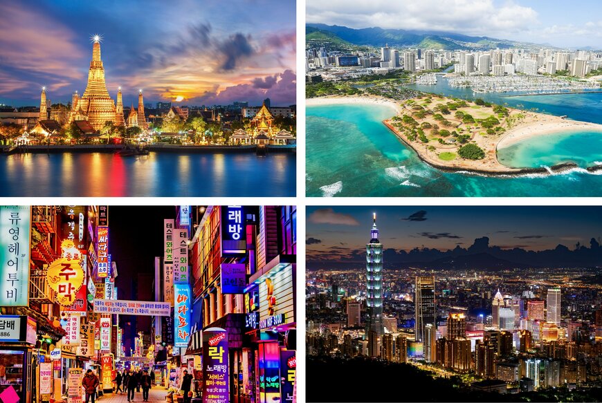 こちらではソウル、ホノルル、台北、バンコクの外せないスポットや堪能すべきローカルグルメ、おすすめホテルなどを厳選して紹介。さらに旅費を節約するためのお得情報についても知ることができますよ。
