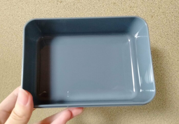 中は仕切りなどもない仕様となっていました。裁縫セットや文房具を入れて、ちょっとしたお道具箱として活用してもよさそうです。