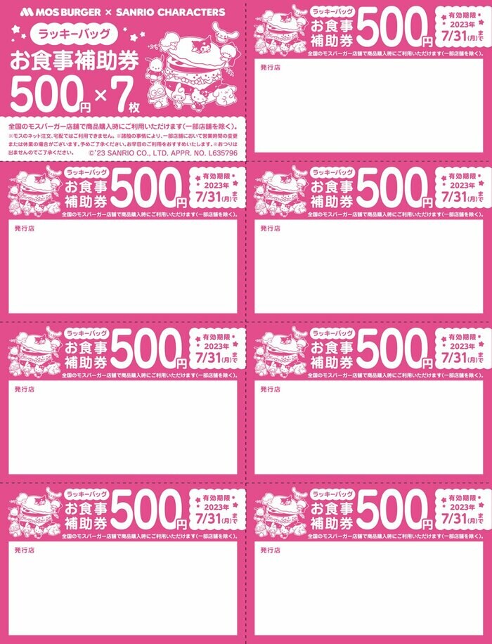 モスバーガーは、2023年4月25日(火)から全国のモスバーガー店舗(一部店舗除く)にて、株式会社サンリオの人気キャラクターが集合した『サンリオキャラクターズ』とコラボレーションしたグッズと、福袋の販売額相当の「お食事補助券」がセットになった『モスバーガー×サンリオキャラクターズ 春のラッキーバッグ』を数量限定で販売します。それに伴い、2023年4月4日(火)から4月20日(木)の間、ネットでの事前予約の受け付けがスタートしました。