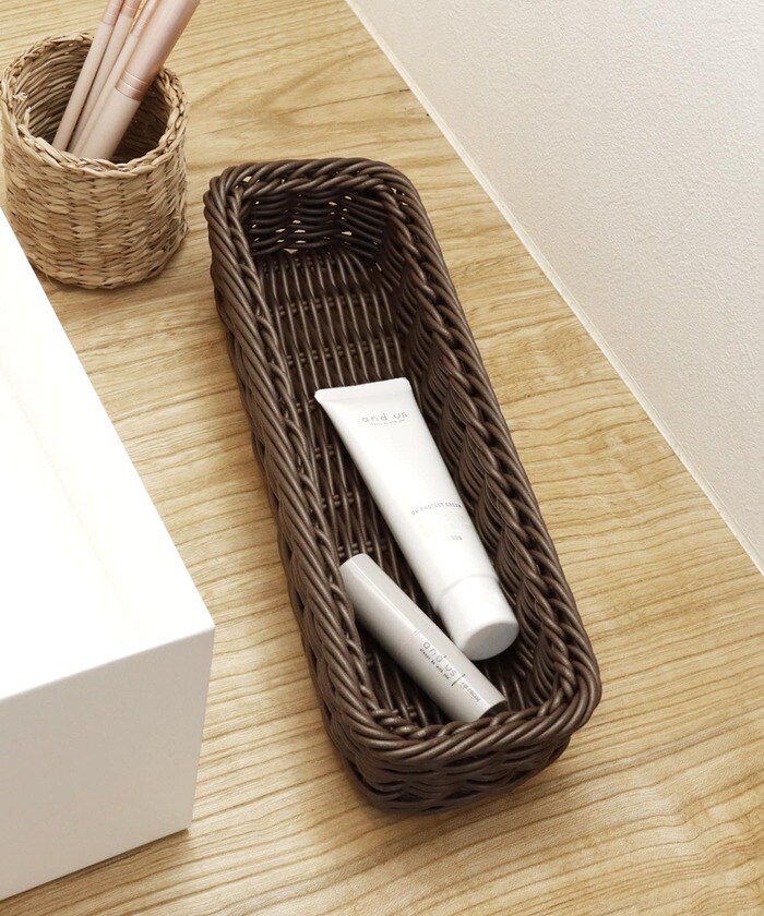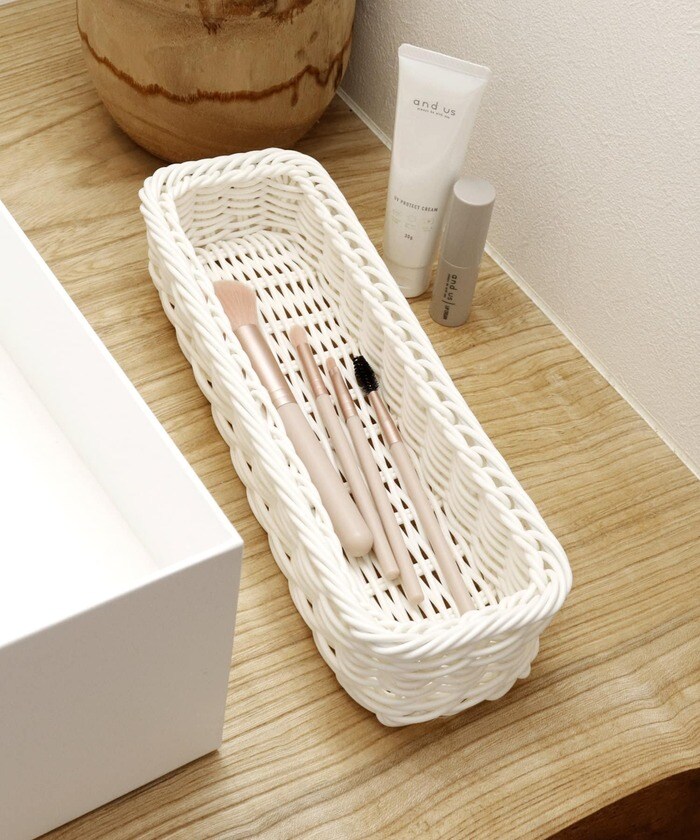 水洗いができるので、ランドリールームやキッチン等水回りの収納にも使えるカゴアイテムです。引き出しの中の小物を小分けして整理整頓できます。お化粧品などを入れておいても汚れるたび洗えて便利ですね。馴染みやすいホワイトとブラウンの2色を展開しています。