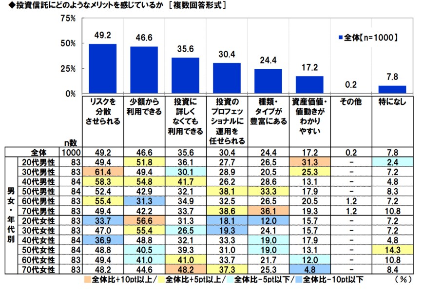 次に、みなさんが投資信託に感じるメリットを見ていきましょう。