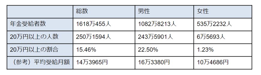 3. 厚生年金の平均受給額は?「ひとりで月20万円以上」の割合も確認