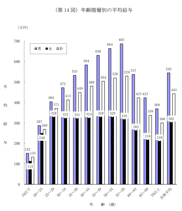 50歳代は会社組織でベテランとみなされます。管理職になる方もいる時期ですので、他の年齢階層と比べて年収が最も高いと考えられます。