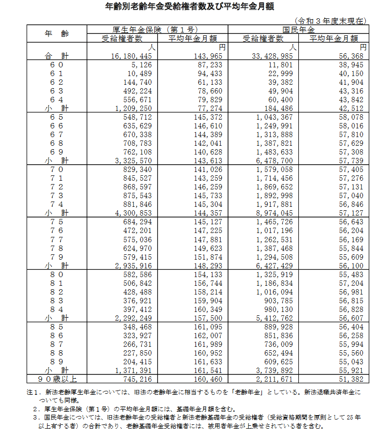 ここでは、厚生労働省が公表した「令和3年度厚生年金保険・国民年金事業の概況」から、70歳代の年金受給額を1歳刻みで確認していきます。