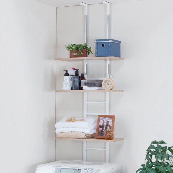 【家具やクローゼットの空きスペースを活用できるアイテム1】・・・3cmの隙間があれば棚が完成する「突っ張り洗濯機ラック」