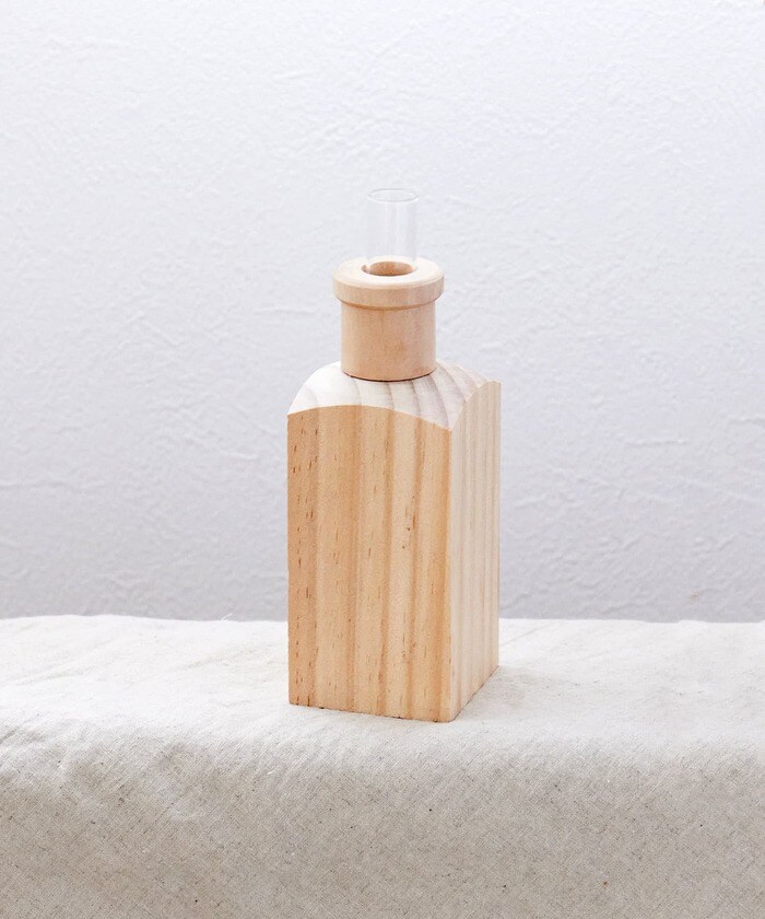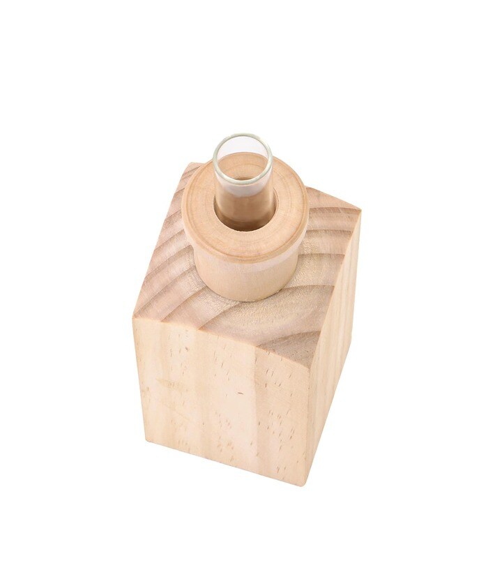 ぬくもりが伝わるウッド素材のフラワーベースです。季節を選ばないデザインなので、四季によって飾る植物を変えるのもおすすめ。フェイクフラワーミニブーケを飾るのにちょうどいいサイズ感なので、手軽にアレンジが楽しめます。