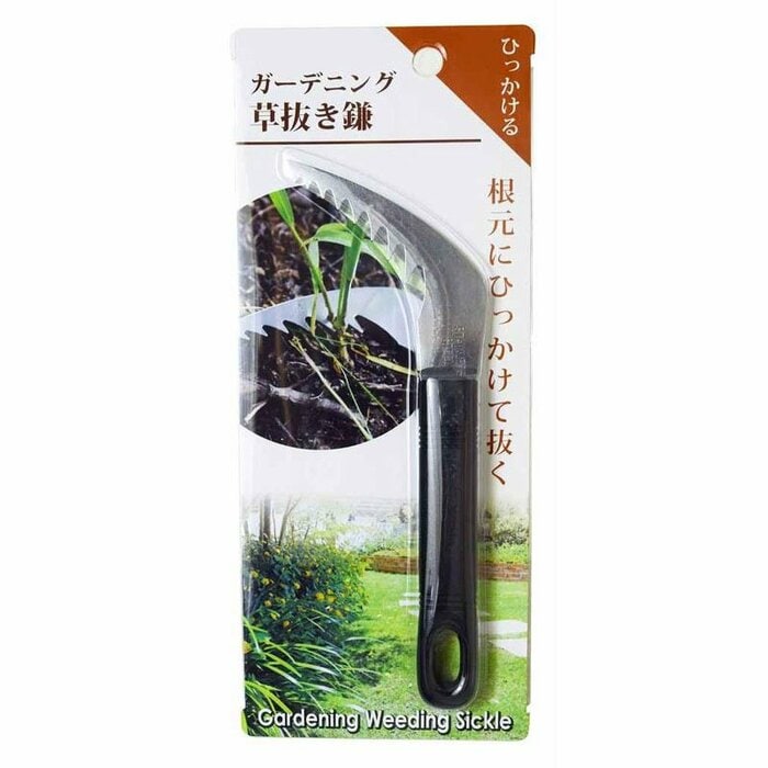 面倒な除草作業の強い味方、草抜き鎌。刃先がギザギザの形状になっているので、雑草の根本にひっかけやすく、根ごと簡単に除草できます。錆びにくいステンレス製です。