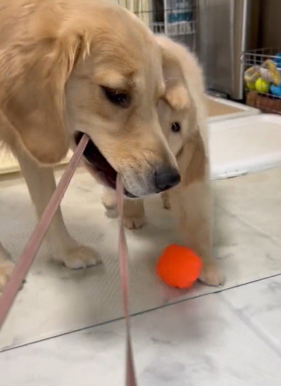 「子犬にスマホストラップを奪われた飼い主、母犬が助けにきてくれたと思ったら一緒に引っ張り始めた」そんなコメントとともに投稿されたのは1本の動画です。