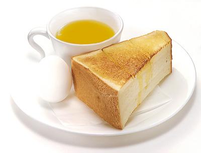 モーニングAのメニューは厚切りトーストと、ゆで玉子とスープがセット。1ドリンクの