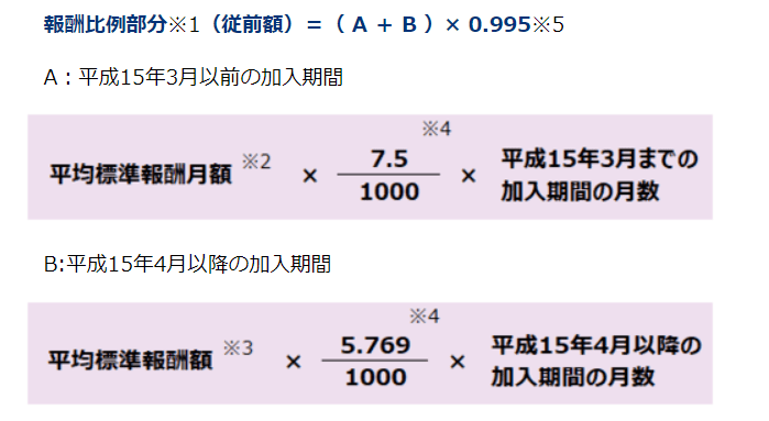 B)2003(平成15)年4月以降:平均標準報酬額×5.769/1000×平成15年4月以後の加入期間