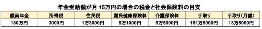 今回は月15万円(年間180万円)の年金を受給する人の税金と社会保険料をシミュレーションしてみましょう。