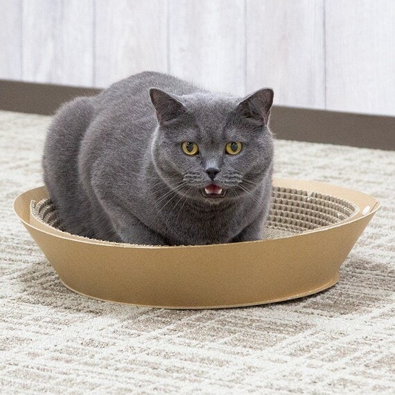 お皿の上に猫がのっているようにも見えます。爪とぎのなかに入っているところを撮影すれば、SNS映えする写真が撮影できそうです。