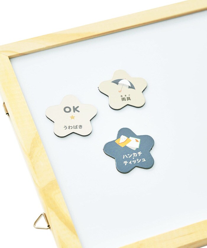 上履きや鍵といった必要なもののチェックができるマグネットです。合計で30枚ついています。