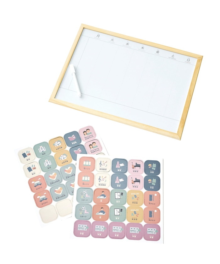 一週間の予定をわかりやすくしてくれるボードです。セット内容は、ボード1枚・マグネット50枚・ペン1本です。
