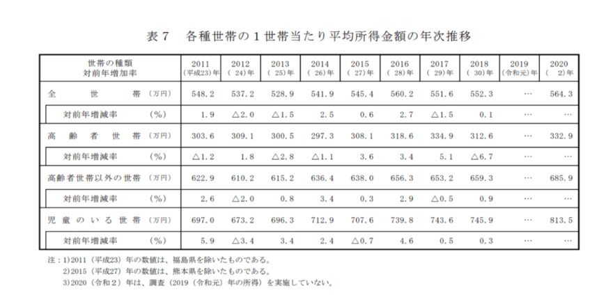 まずは厚生労働省「2021年 国民生活基礎調査の概況」より、子育て世帯の平均年収を見ていきましょう。