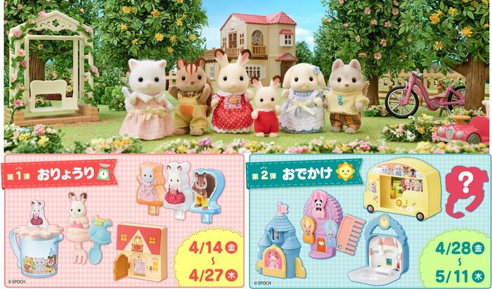 シルバニアファミリーの中でも特にファンの多い“赤ちゃん”たちの遊び場として、シルバニアファミリーから4月8日(土)に発売した“ほいくえんシリーズ”をモチーフにしたおでかけバッグや、好評発売中の“ゆうえんちシリーズ”をモチーフにしたミラーやヘアコームなどおでかけが楽しめるアイテム4種と、ひみつのおもちゃ1種が登場しました。