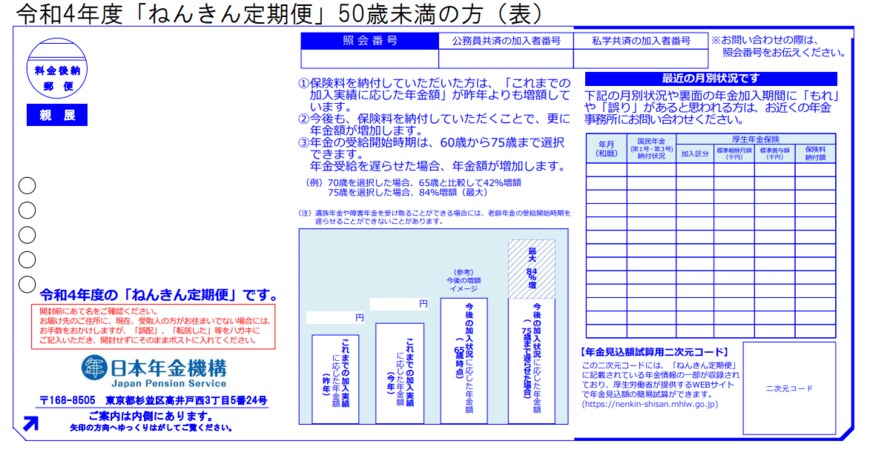 2.2 50歳未満の人に送られる「ねんきん定期便」