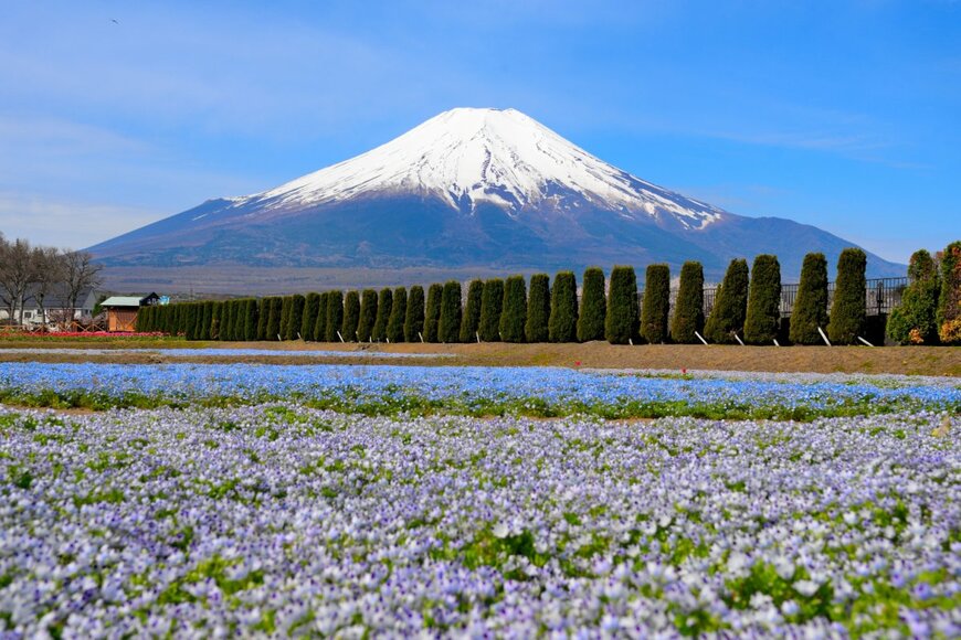 雄大な富士山とネモフィラのコラボを楽しめる山中湖花の都公園。全国でも唯一無二の絶景を見られるのが最大の魅力です。