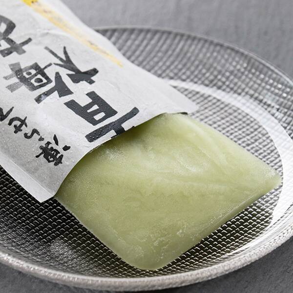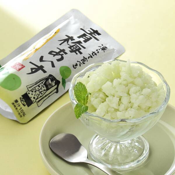 凍らせてから食べる甘酸っぱい青梅の風味が特徴的のアイスバーです。常温で保存できます。和歌山県産うめ果汁が入っています。