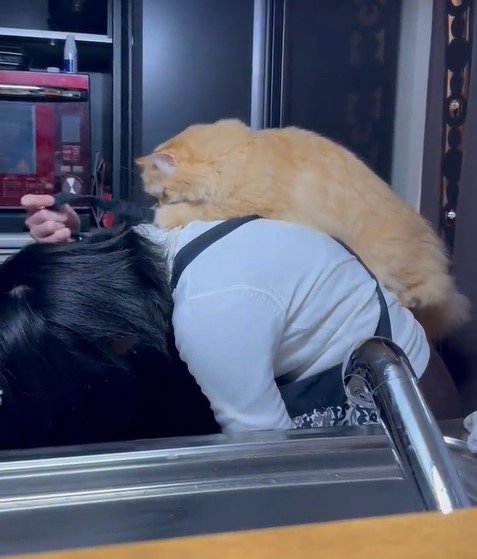 洗い物中に猫らに絡まれても遊んであげる嫁氏に震える。 pic.twitter.com/E3t5k7HHDZ