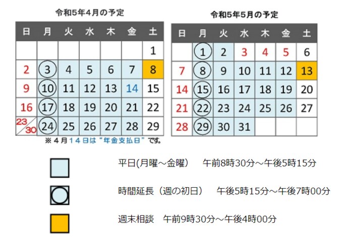 また第2土曜日の午前9時30分から午後4時まで「週末相談」も実施しているため、利用を検討してみてはいかがでしょうか。